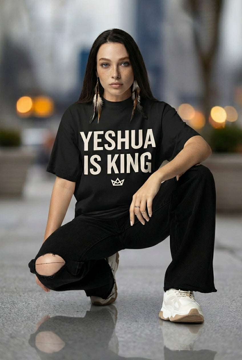 Premium heavyweight tee featuring “Yeshua Is King” above a crown. Built for everyday wear. Designed to declare. Where faith meets form and every thread gives Him glory.
